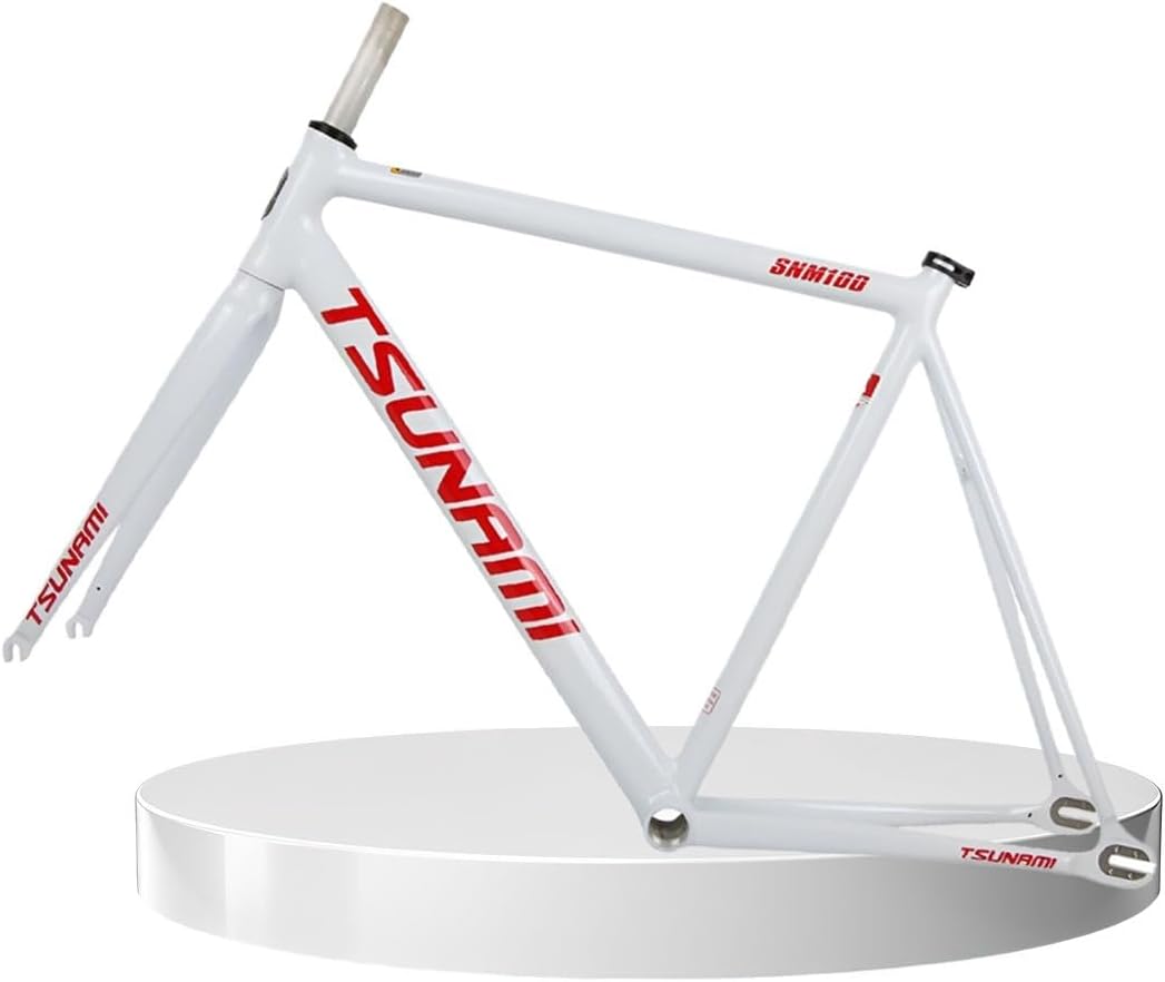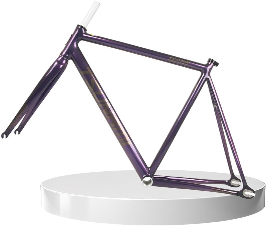 Fixed Gear Bike Frameset 49CM 52CM 55CM 58CM 700C Aluminium Alloy Quick Release Frame 100mm/120mm Track Bicycle C Brake FrameProduct name: Aluminum alloy track bike framestFrame higth:49CM 52CM 55CM 58CMFor wheel:700CMAX Tire width: 25CHead tube: 1-1/8" 28.6mmBottom Bracket:BSA68mm threaded bottom bracketQuick Release Axle Spacing: front 100mm rear 120mmBrake: C brakeMaterial: Aluminum alloyWeight: frame weight approx 1493g, fork weight approx 665gColours: Black, Red, Purple, Off-white, Army Green, Silver, Rose Gold, Orange, Cement Grey, Green, Gloss Black, Blue Black, Blue White, White, Sky Blue, Light Pink, Matte Black, Titanium, Black 1, Yellow, Anthracite Grey, Green 1, Purple 1, Purple 2, Tangerine 1, White Red, Black Pink.Package:Frame + Fork + Seatpost clamp + HeadsetNotice:1. Due to different shooting angles, there will be chromatic aberration problems, because there will be 1-2cm error due to manual measurement, please understand.2. If you have any questions, please feel free to contact us, we will reply you in time.
