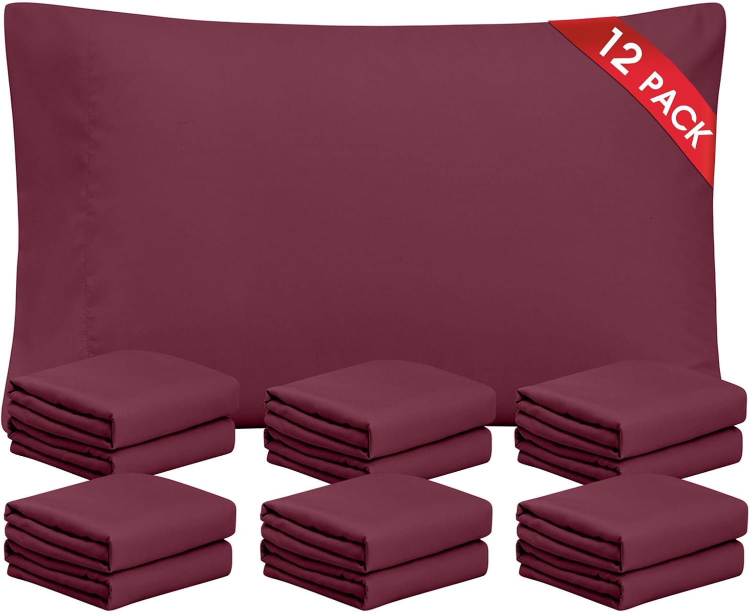 【12-Pack Pillow Cases】Bulk pack of 12 king size pillow cases, measuring 40" x 20" (Pillow insert or cushion is not included).