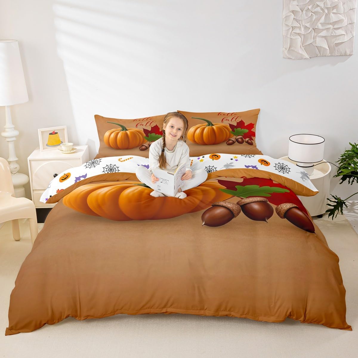 I: Package Include 1 Duvet Cover and 1 Pillowcase The Modern Duvet Cover Set Pattern Bedding Set,Simply Decorating Your Rooms Any Time You Want,Bringing You Fresh Feel for Year Round Use. Long Lasting Made From Polyester Microfiber,The Duvet Cover Offers Long - Lasting Strength,A Noticeably Soft Hand Feel. II :Size Information Twin SizeL: 2Pcs Duvet Cover Set:1 Duvet Cover 68"x90"(173x228cm),1 Pillowcase 20"x30"(51x75cm),Without Comforter. Full Size: 3Pcs Duvet Cover Set): 1 Duvet Cover 79"x90"(200x229cm),2 Pillowcase 20"x30"(51x75cm),Without Comforter. Queen Size: 3Pcs Duvet Cover Set:1 Duvet Cover 90"x90"(229x229cm),2 Pillowcase 20"x30"(51x75cm),Without Comforter. King Size: 3Pcs Duvet Cover Set:1 Duvet Cover 104"x90"(264x229cm),2 Pillowcase 20"x36"(51x92cm),Without Comforter. III: Personalize Your Bedroom Beautiful Design and Colorful Print,Makes Your Bedroom Unique and Brings You a Wonderful Dream. IV: Washing Instructions Machine Wash Separately In Cold Water,Hang Dry,Do Not Bleach. V: Occasion The Cute Soft Duvet Cover Bedding Sets Designed for Children,Adult,Men,Women,Teens. This Duvet Cover Set Is Also Suitable for Full Seasons,Spring,Summer,Autumn and Winter. It Also Can Be Used As a present for Your Family and Friends. Such As Halloween,Christmas.