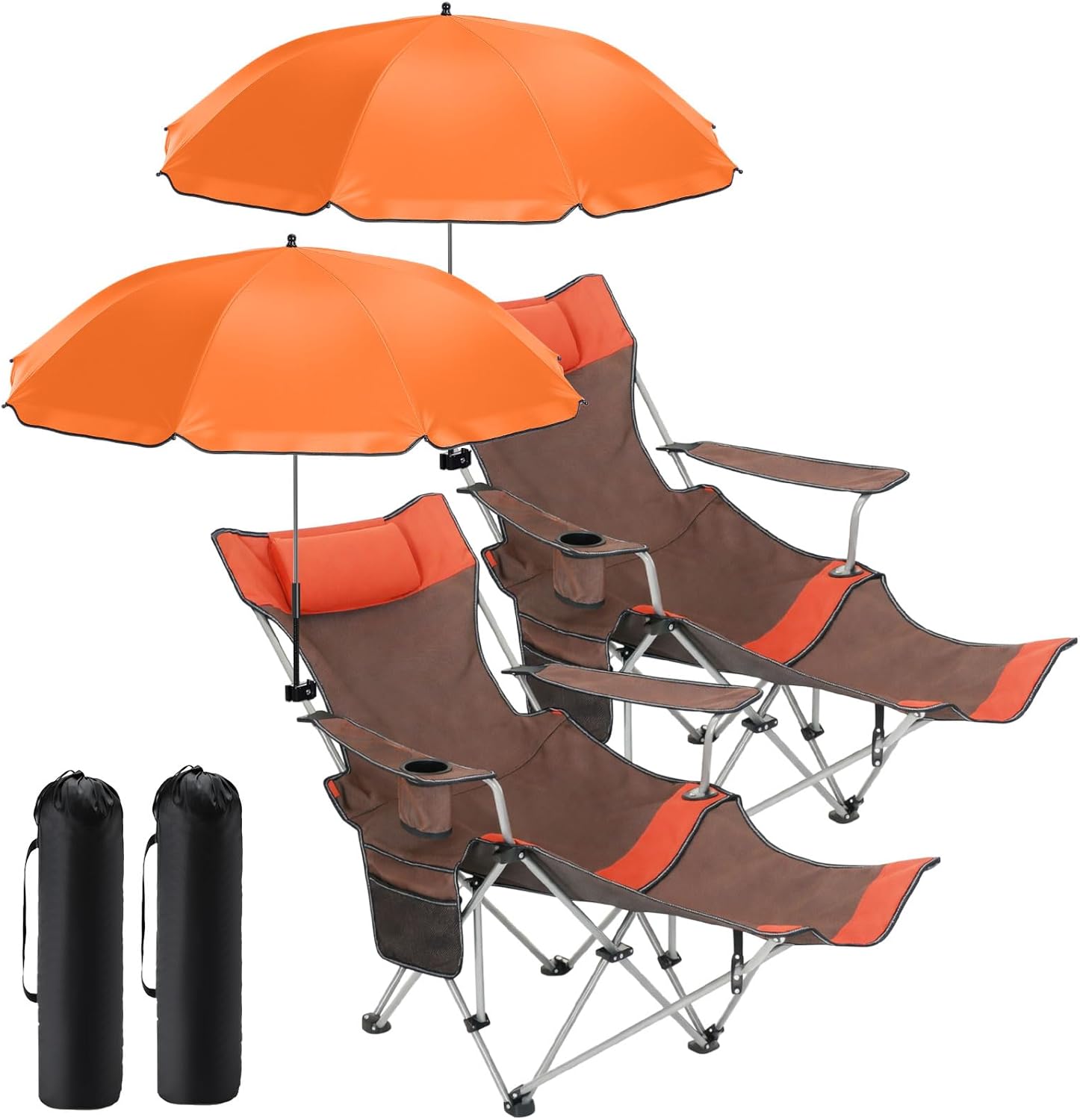 Features: Lightweight and foldable, this reclining camping chair is easy to carry and ideal for those who love outdoor activities like backpacking. Each folding camping chair comes with a storage bag for your convenience. The included camping chairs with footrest make lounging a whole comfortable experience. Moreover, the folding chair with shade is designed to be easy to assemble and disassemble, so you can focus more on enjoying your outdoor time. Specifications: Material for chair: oxford cloth Color: Dark Blue and White Size: Camping chair: about 61.42 x 35.24 x 21.26 inches/ 156 x 89.5 x 54 cm Chair umbrella: about 42 inches in diameter Package includes: 2 x Camping chairs 2 x Chair umbrella Notes: Manual measurement, please allow slight errors on size. The color may exist a slight difference due to different screen displays