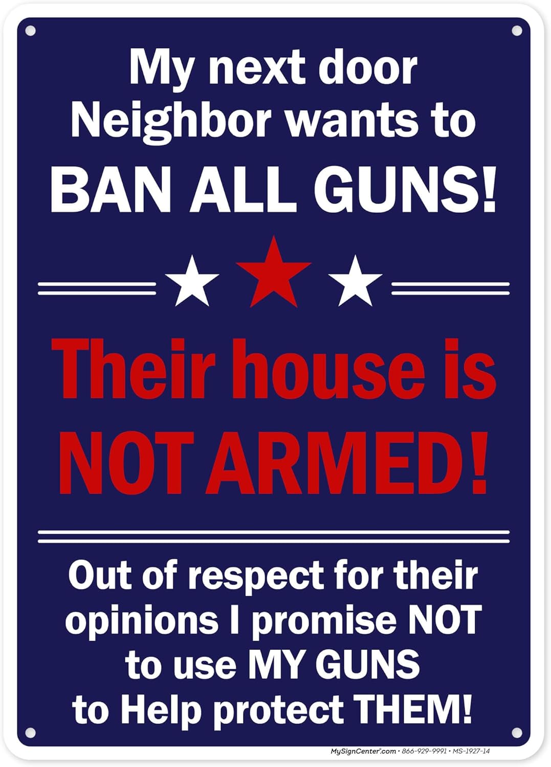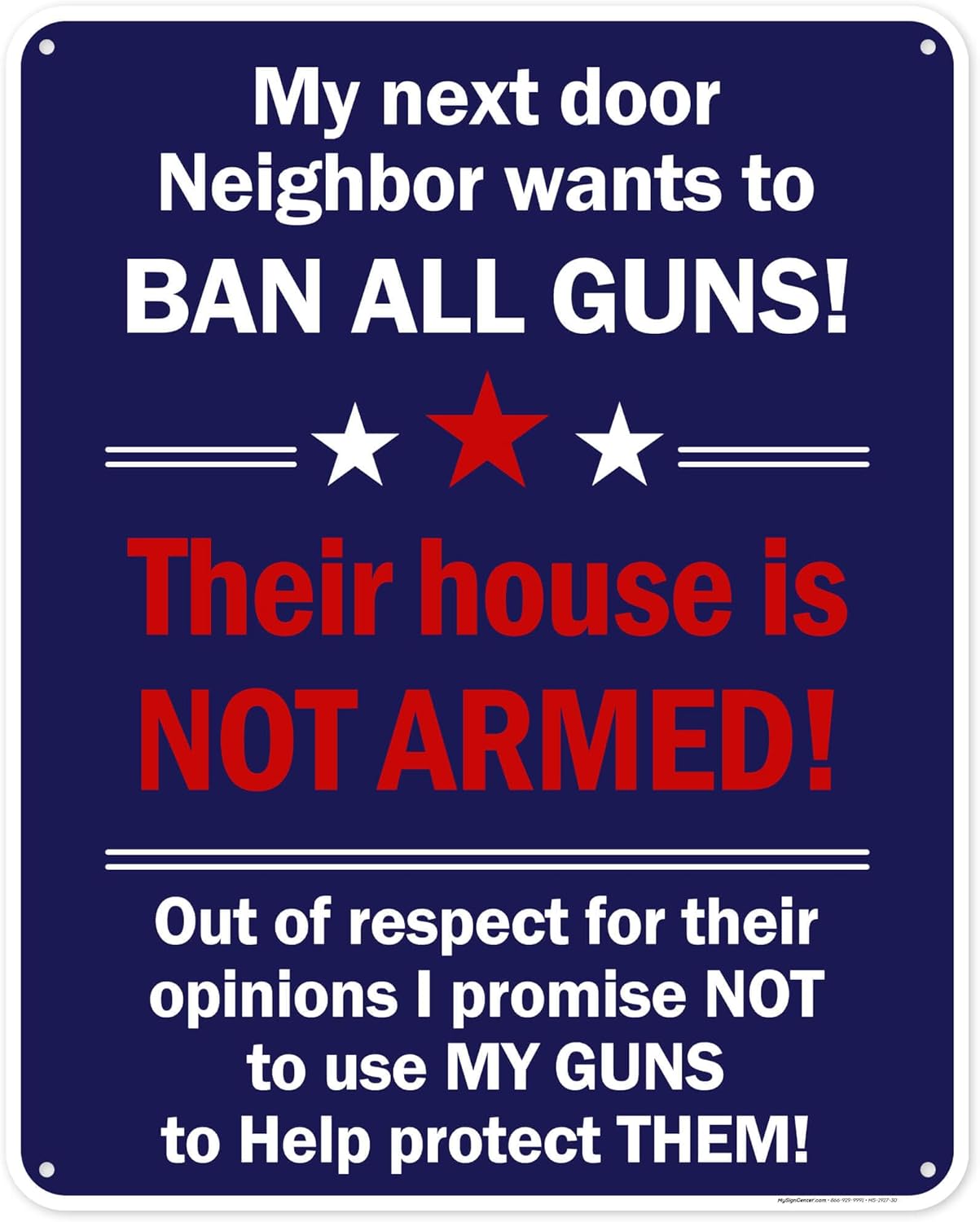 My Next Door Neighbor Wants to Ban All Guns! This House Is Not Armed! Sign, 18"x24" Polyethylene, Indoor/Outdoor Use, USA MADE By My Sign Center