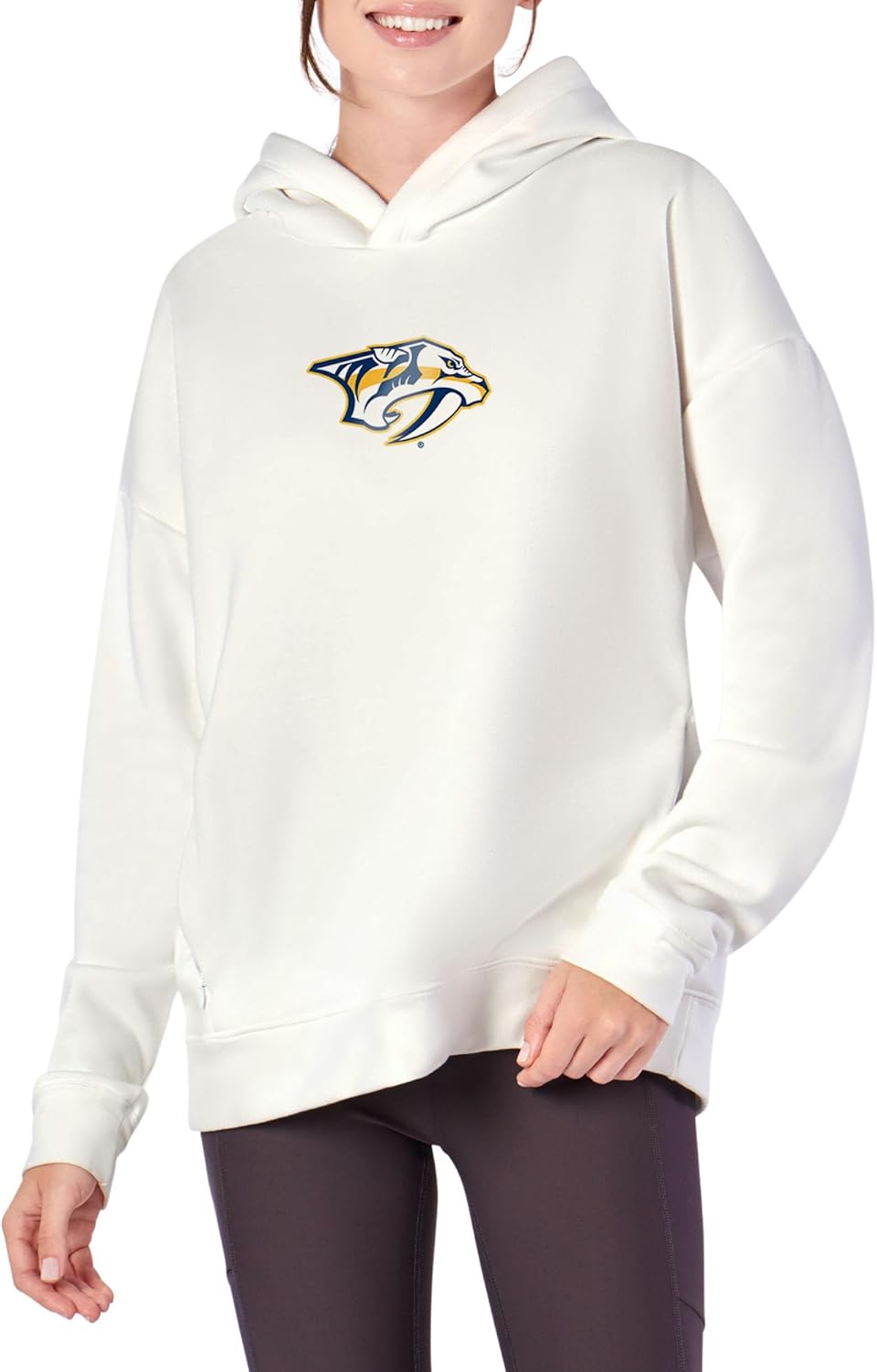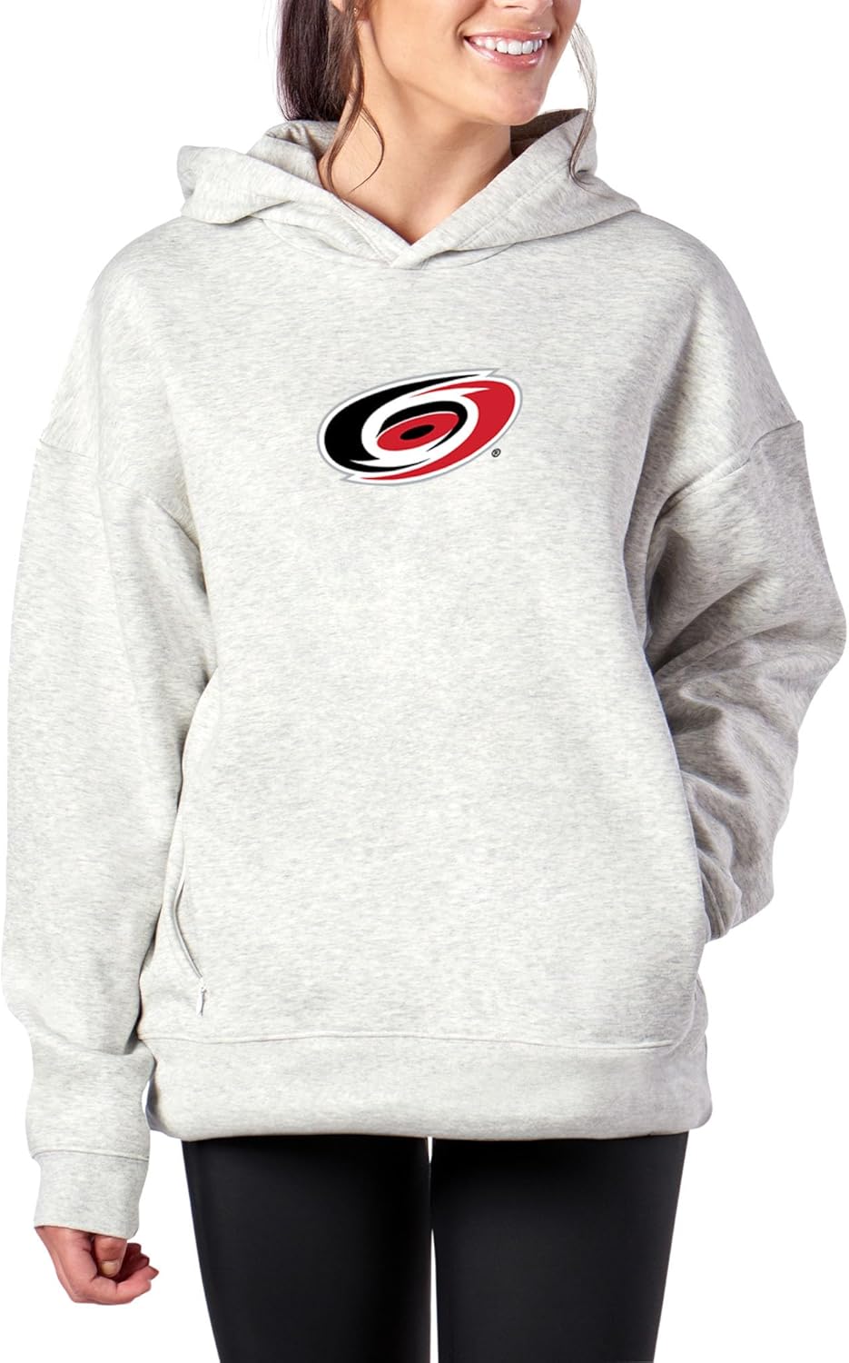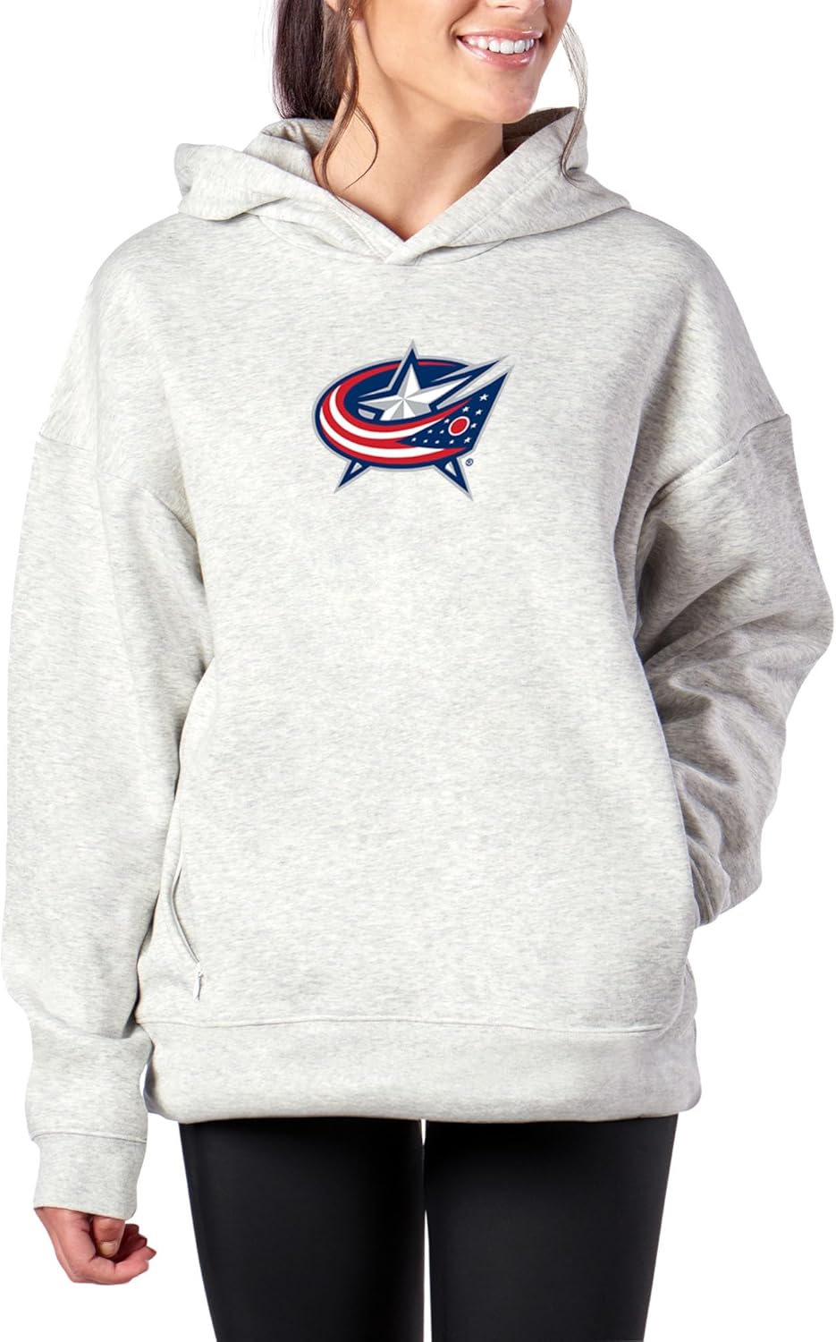 This women's fleece pullover hoodie offers a balance of comfort, style, and everyday versatility. The relaxed silhouette pairs easily with casual outfits, while the soft fabric blend provides warmth for indoor and outdoor wear. An officially licensed team logo is positioned at the upper chest, creating a clean and simple look that supports your favorite team without overwhelming the design. Functional front zipper pockets add secure storage for small essentials and introduce a modern touch. The hood and long sleeves offer additional coverage, making this hoodie suitable for travel, light activity, or daily layering. Whether worn alone or under a jacket, it delivers dependable comfort throughout the season.