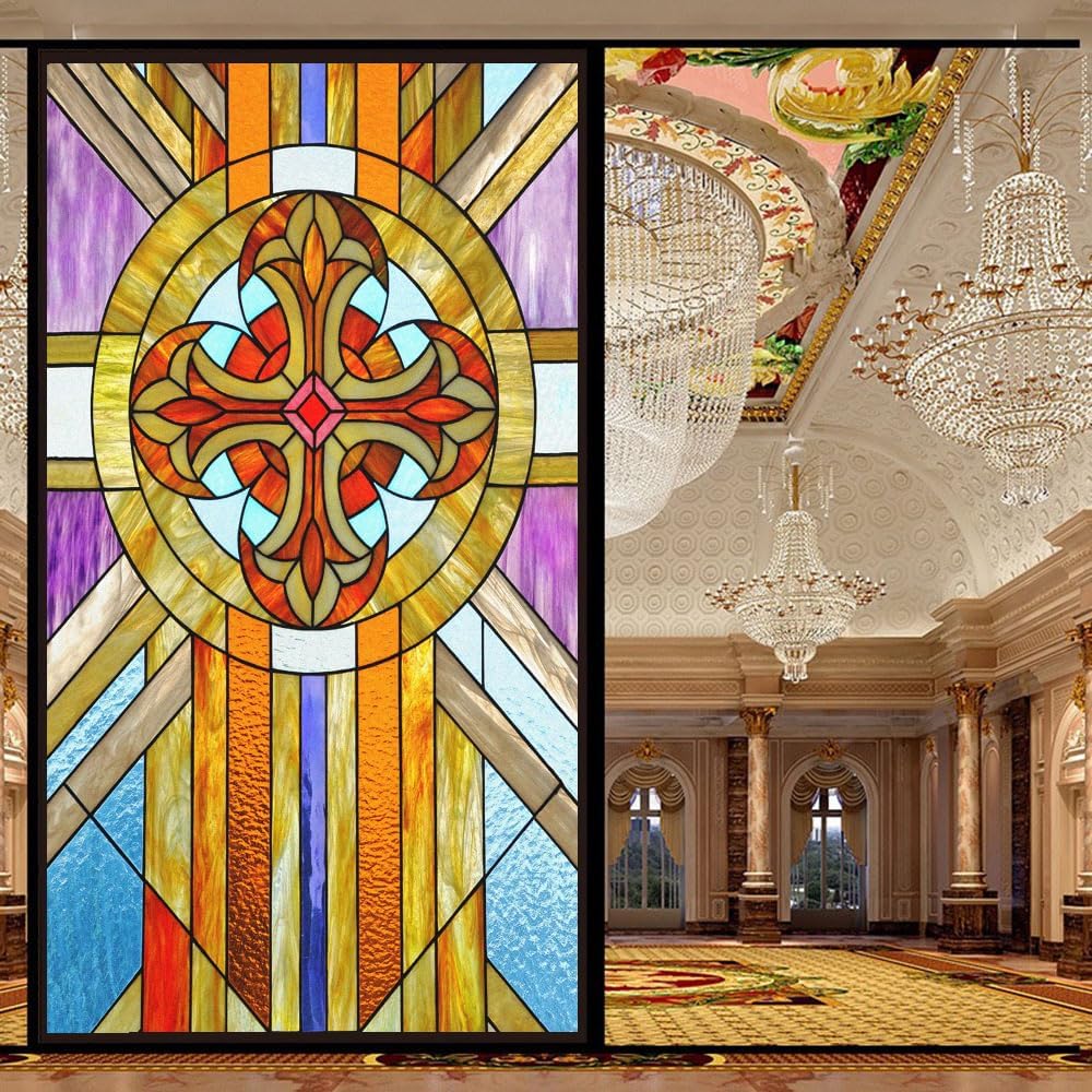 All our products are all Original Design, Our self-adhesive frosted window film provide privacy control while still allowing natural light to enter the room. Partial privacy protection blurs unwanted views, simple frosting texture decorates your personal space, static cling to the surface without glue, simple peel-and-stick installation, easy to cut and trim, easy to remove and re-apply for multiple times, you can be trimmed or combined to fit any size window. Acmore window films create the look of stained and etched glass. These films provide UV protection and perfect decoration for windows that require continued privacy! Key Features: Eco-Friendly: Hassle free peel-stick application in a breeze and easy removal leaving no damage or residueExclusive Pattern: Decorate your home windows with this exclusive patterns light filtering window film: Say goodbye to 84% UVA rays and 99% UVB rays that may hurt your skin and cause furniture fading.heat Reducing window film, it help sun blocking,TipsThe window film works only on flat, clean, and smooth surfaces. It will not stick on plastic, broken or uneven surfaces.