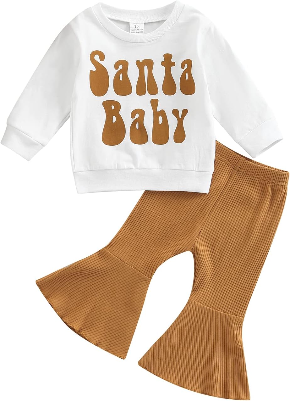 Toddler Baby Girls Valentine's Day Outfits Pants Set Letter Print Long Sleeve Sweatshirt Casual Flared Pants Bell Bottoms Trousers SetToddler Baby Girl Valentines Day Outfit Bell Bottoms Mommy's Little Valentine Sweatshirt Long Sleeve Shirts Top Flared Pants Valentines Day ClothesFeaturesLetter print, crew neck, long sleeve sweatshirt tops with stretch casual flared bottoms, your little one will get lots of compliments wearing it.Suitable for daily wear, carnivals, photography, holidays, leisure, birthdays, travel, etc., to show your baby's unique temperament.Size(cm)/(inch) Advised Age: 6-9 Months Tops Length: 33 / 12.99 Bust: 53 / 20.87 Advised Age: 9-12 Months Tops Length: 35 / 13.78 Bust: 55 / 21.65 Advised Age: 12-18 Months Tops Length: 37 / 14.57 Bust: 57 / 22.44 Advised Age: 18-24 Months Tops Length: 39 / 15.35 Bust: 59 / 23.23 Advised Age: 2-3 Years Tops Length: 41 / 16.14 Bust: 61 / 24.02 Specifications:Material: Cotton BlendSeason: AutumnGender: Baby GirlOccasion: DailyStyle: FashionSleeve: Long SleevePattern: Letter PrintPackage Contents:1 Tops1 TrousersNote:There may be 1-2 cm deviation in different sizes, locations and stretch of fabrics. Size chart is for reference only; there may be a little difference with what you get. Color may be lighter or darker due to the different PC display.Promise:If the product has any quality problems, please feel free to contact us, we will help you solve the problem as quickly as possible.
