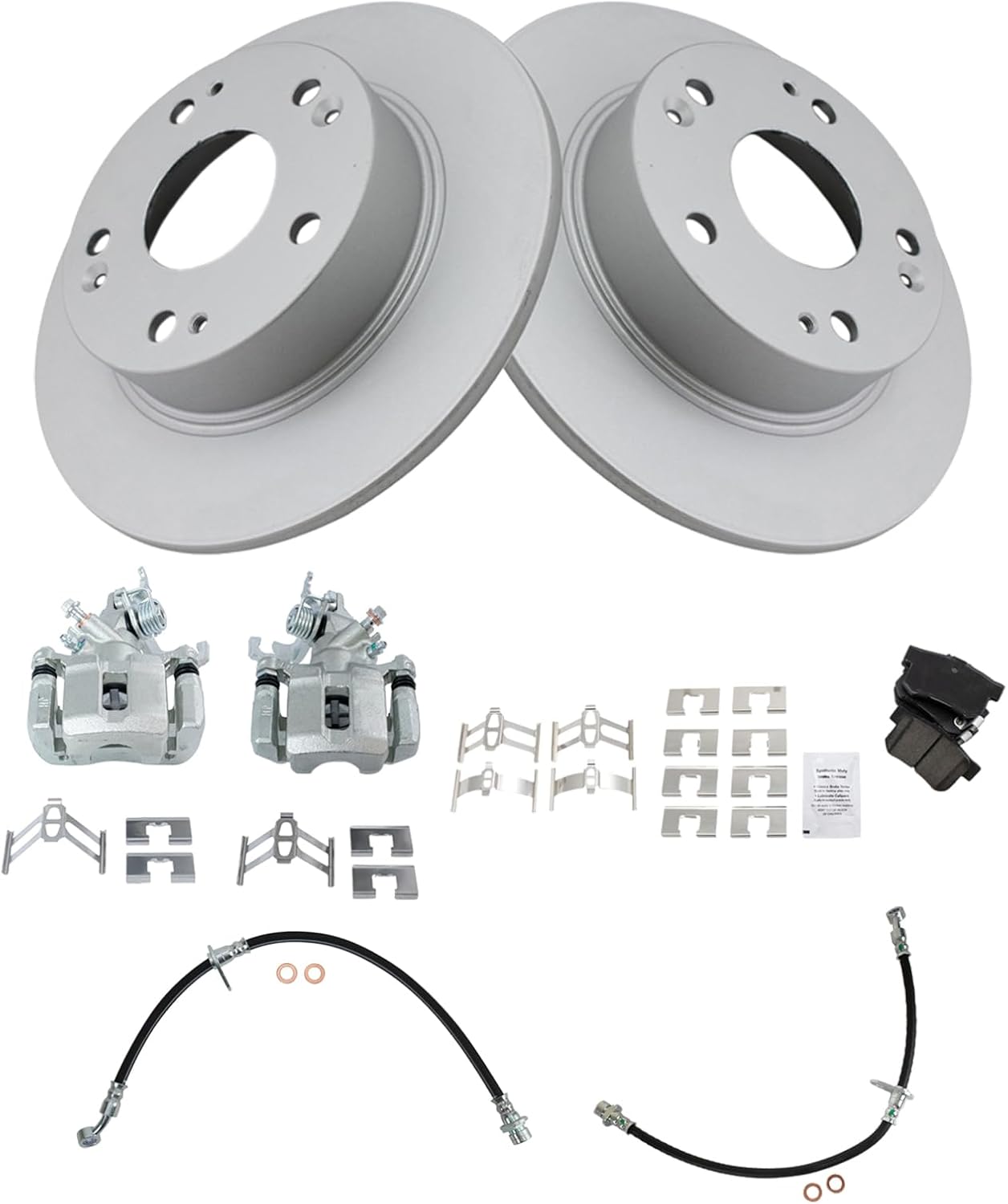 | Included Components | Ceramic 7 Piece Brake Pad & Rotor Kit with Calipers & Hoses |
