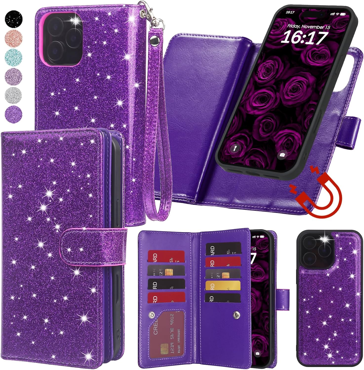 | Additional Features | 2-in-1 RFID Blocking Wallet Phone Case, Card Slot, Detachable Magnetic Phone Cover, Premium Fashion Glitter for Women, With Removable Wristlet Strap |